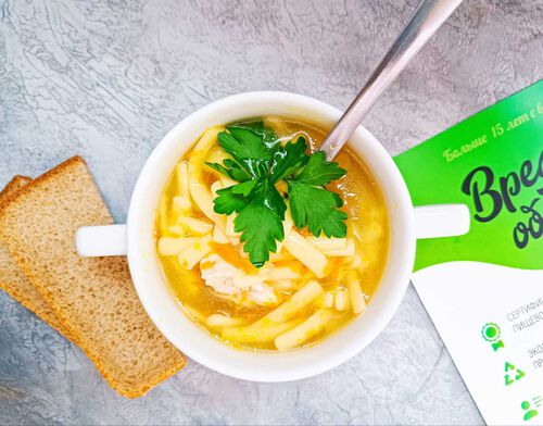 Борщ (300 мл.), рис с курицей (250 гр.)