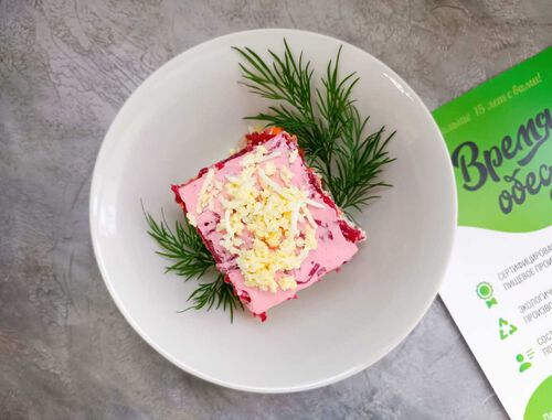 Состав: картофель, морковь, свекла, лук репчатый, сельдь с/с, яйцо, майонез