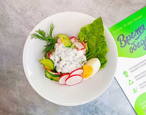 салат "Российский" (100 гр.), котлета куриная (100 гр.) с макаронами.